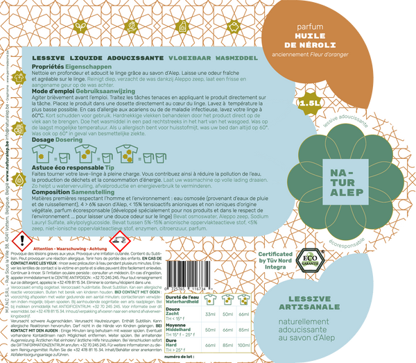 - De part sa teneur en savon d'Alep, notre lessive possède des propriétés lavantes inégalables, garantissant la vie dure aux taches les plus tenaces (sang, gazon, vin, ...) !
